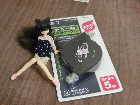 部屋の無線LAN環境がさっぱりだったので、今後もこういう事はあるだろうと巻き取り式のLANケーブルを買っておきました。本当は昨日上野のヨドバシ辺りで買っておこうと思ったんですけど、すっかり忘れてたんですよね……。